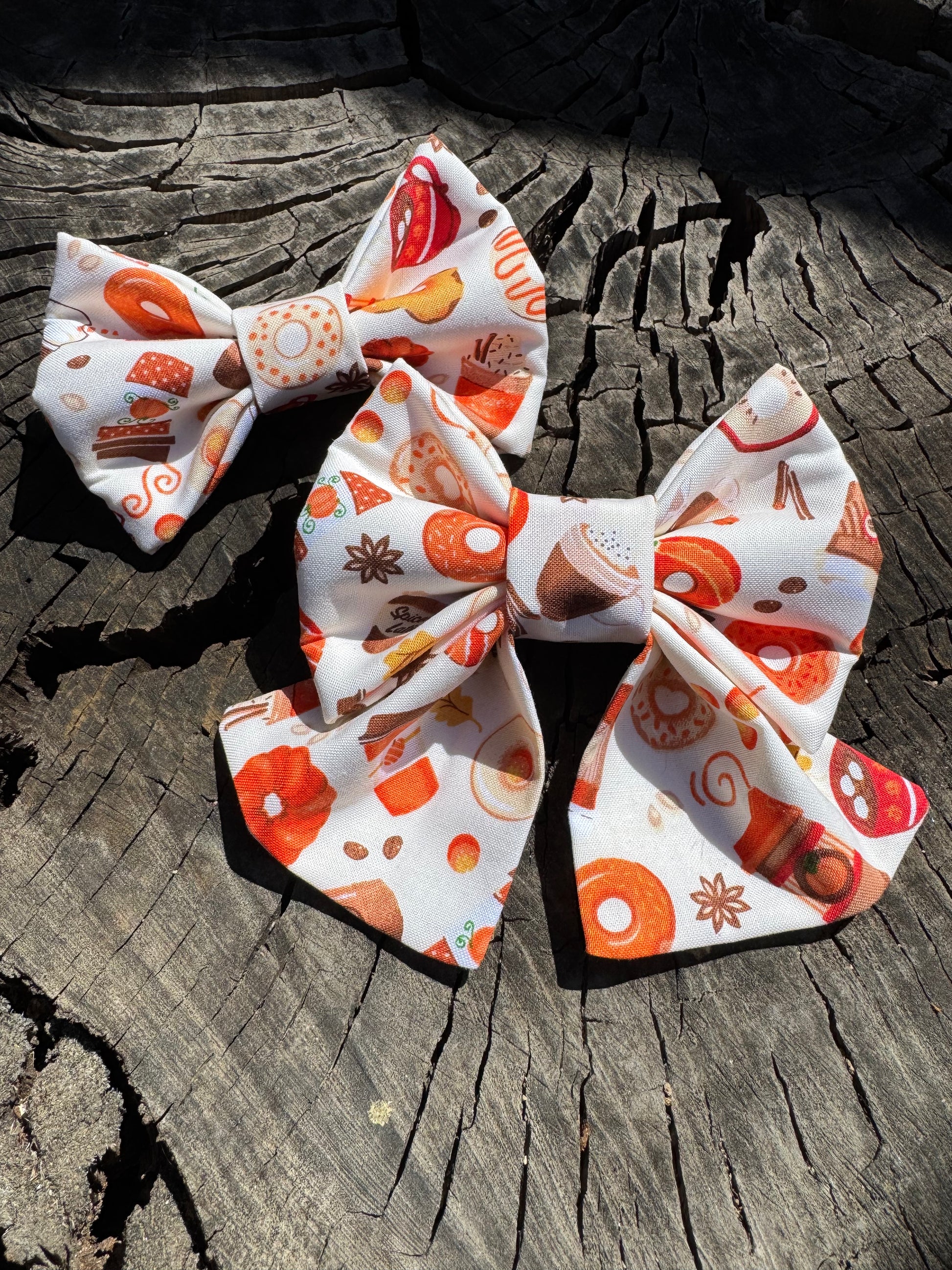 All bows are handmade, so patterns and sizes will vary slightly. There are two 1.5" elastic bands at the back of the bows.