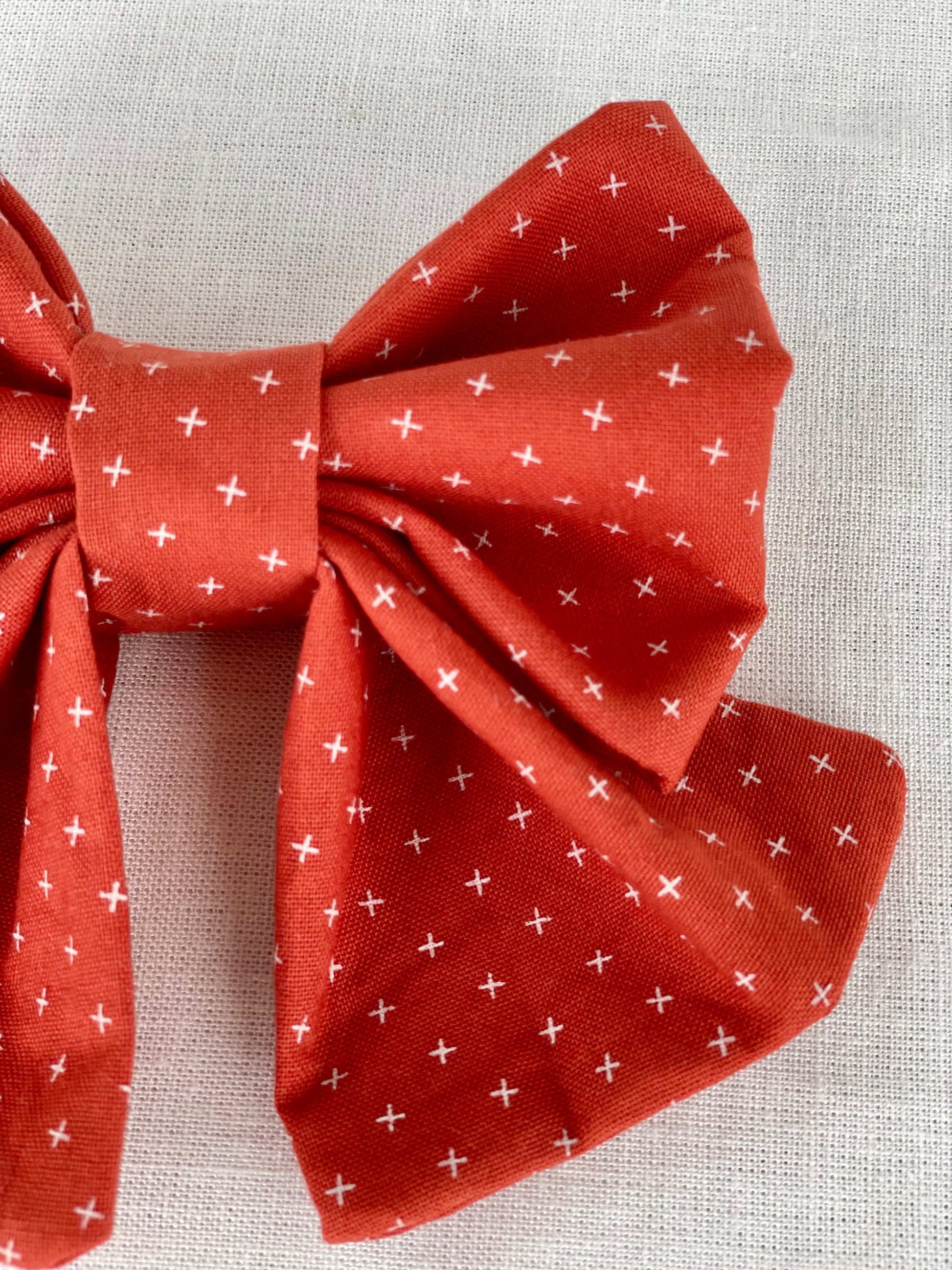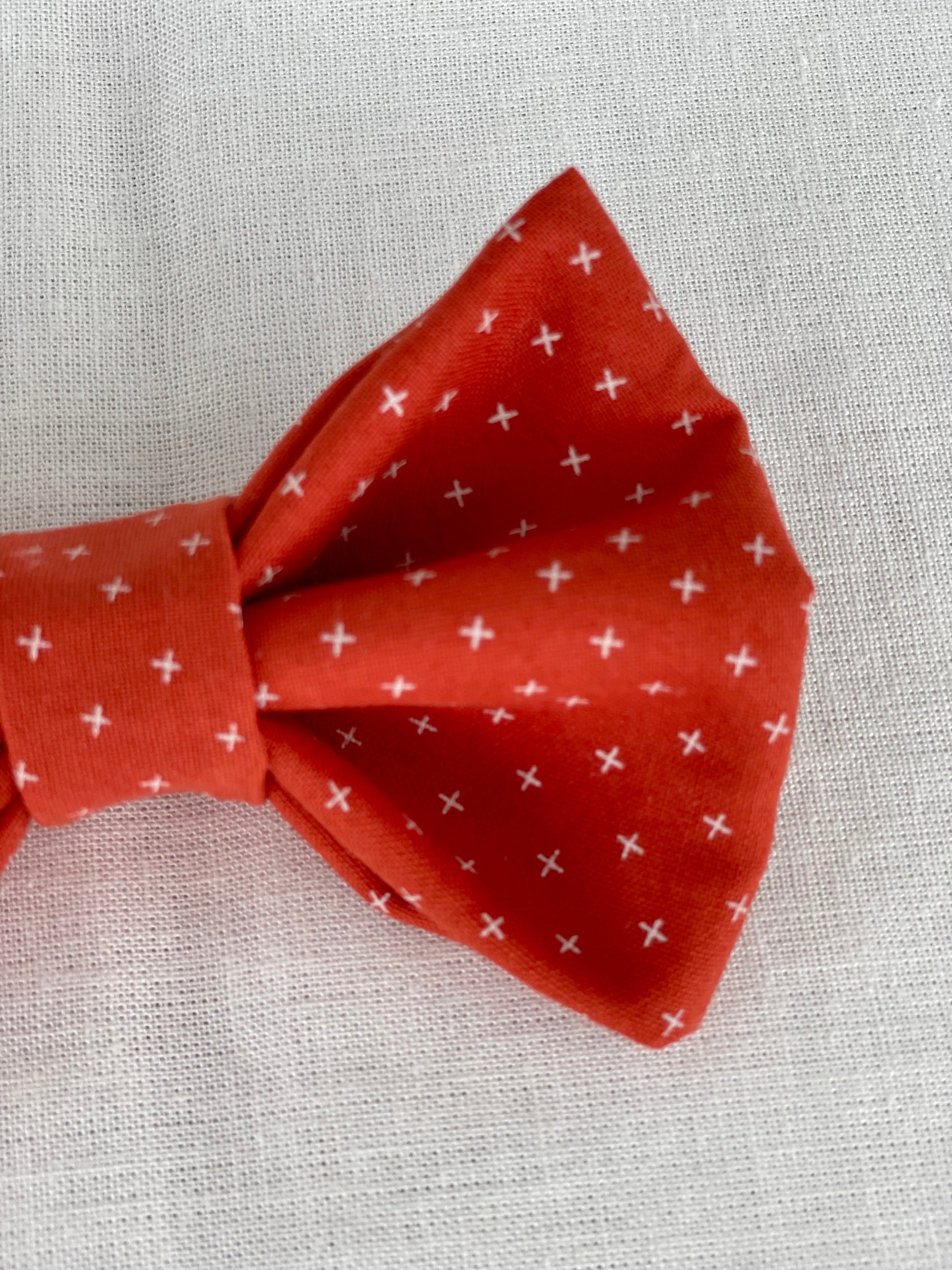 Maple is a cotton blend in reddish burnt orange with little white plus signs.