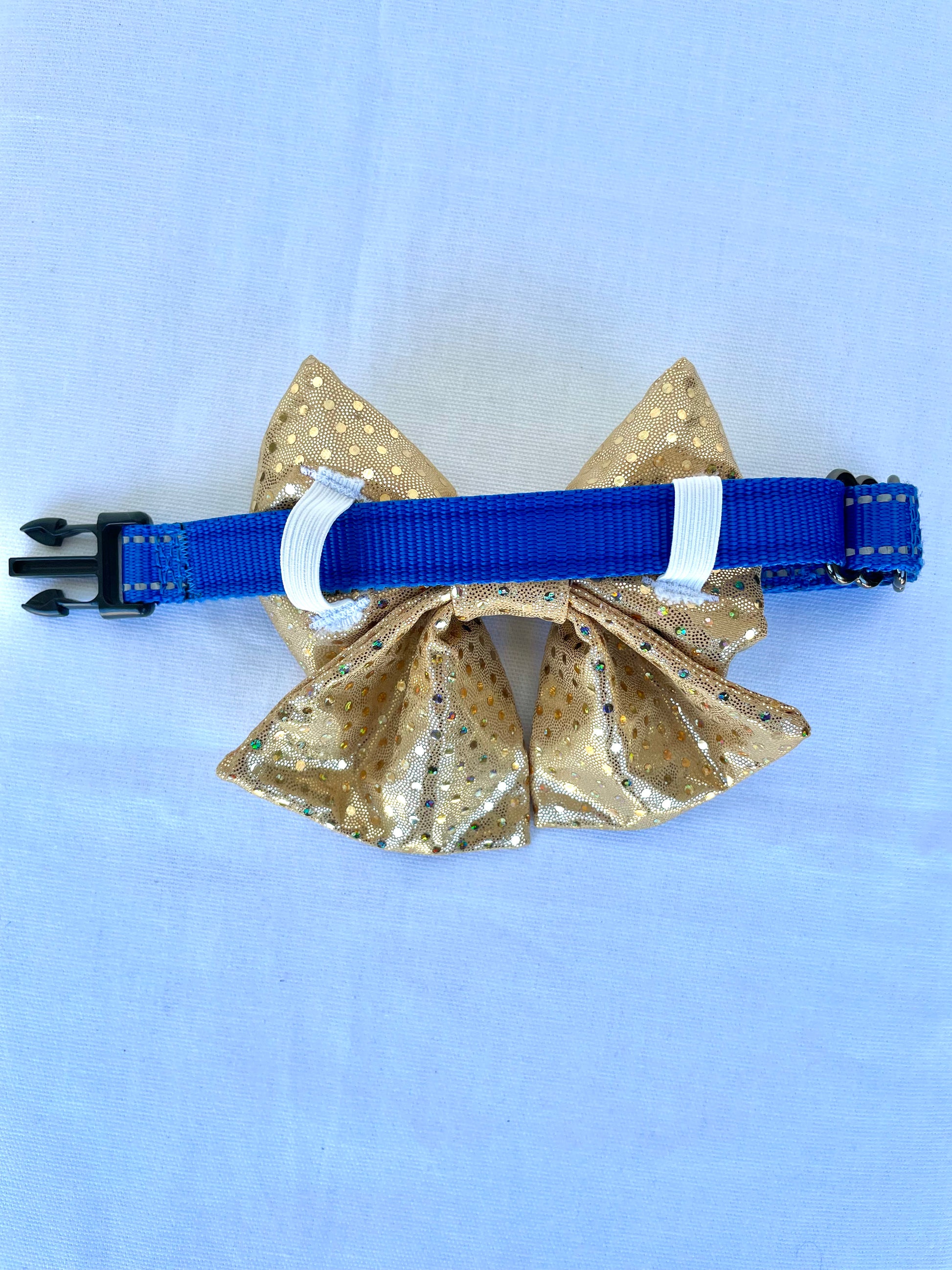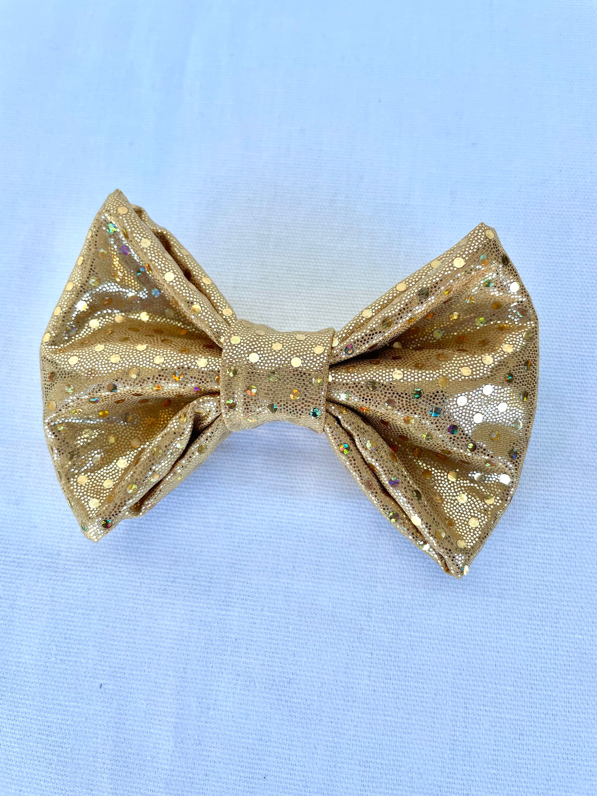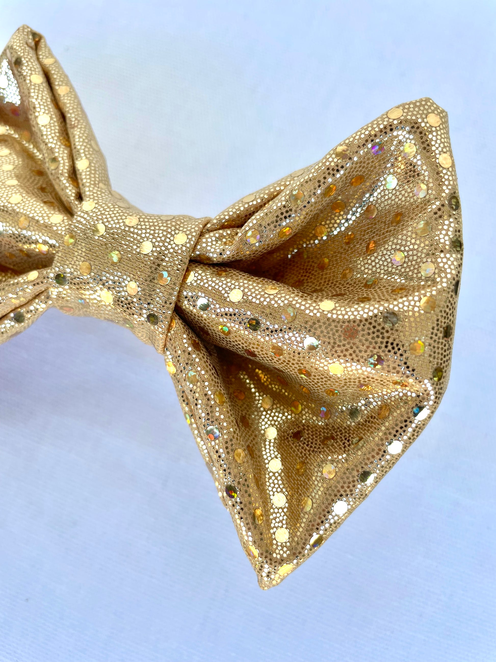Named by the 2022 Le Pawdrobe Models, this sparkly gold bow is all ready to pawty!