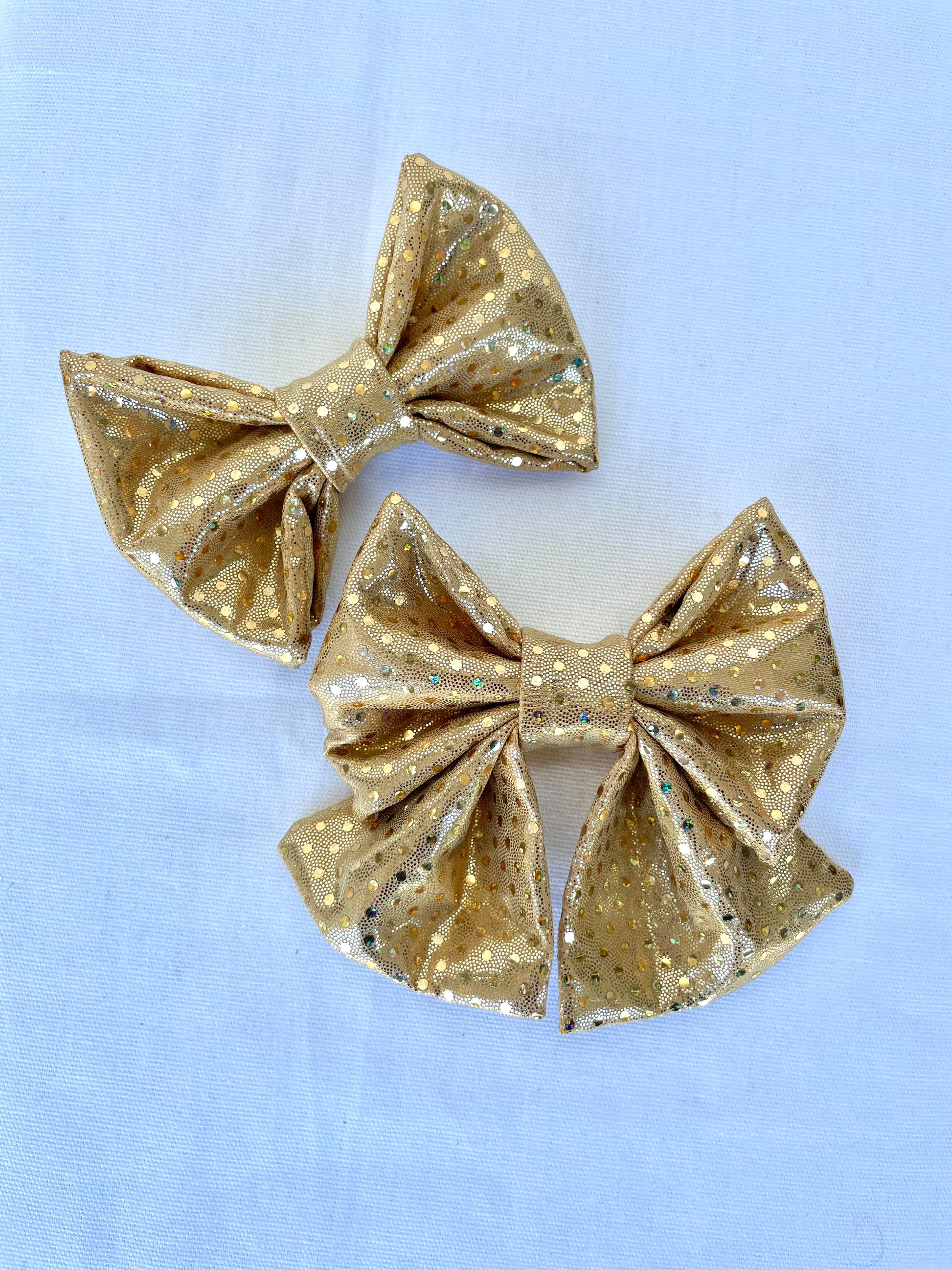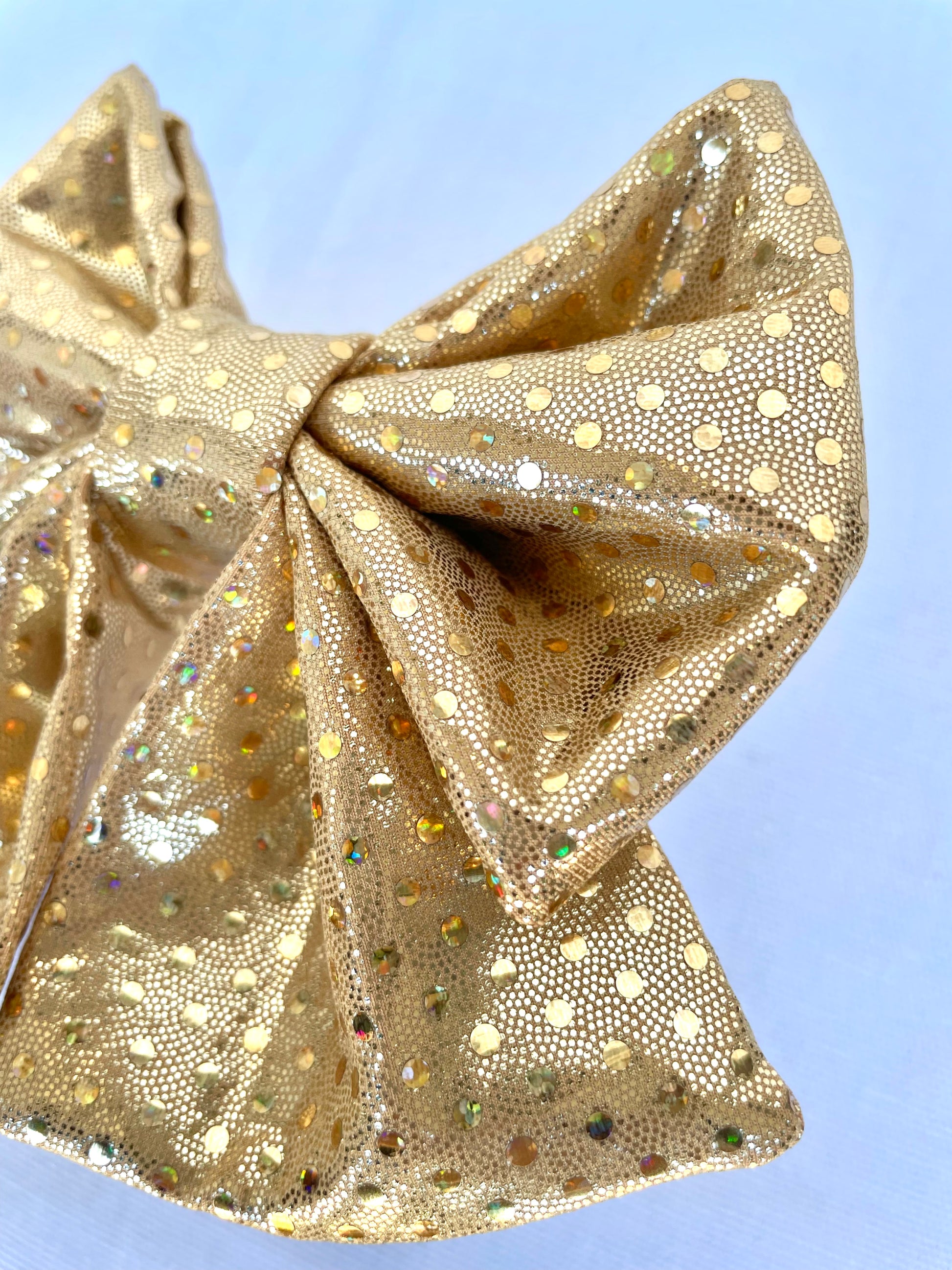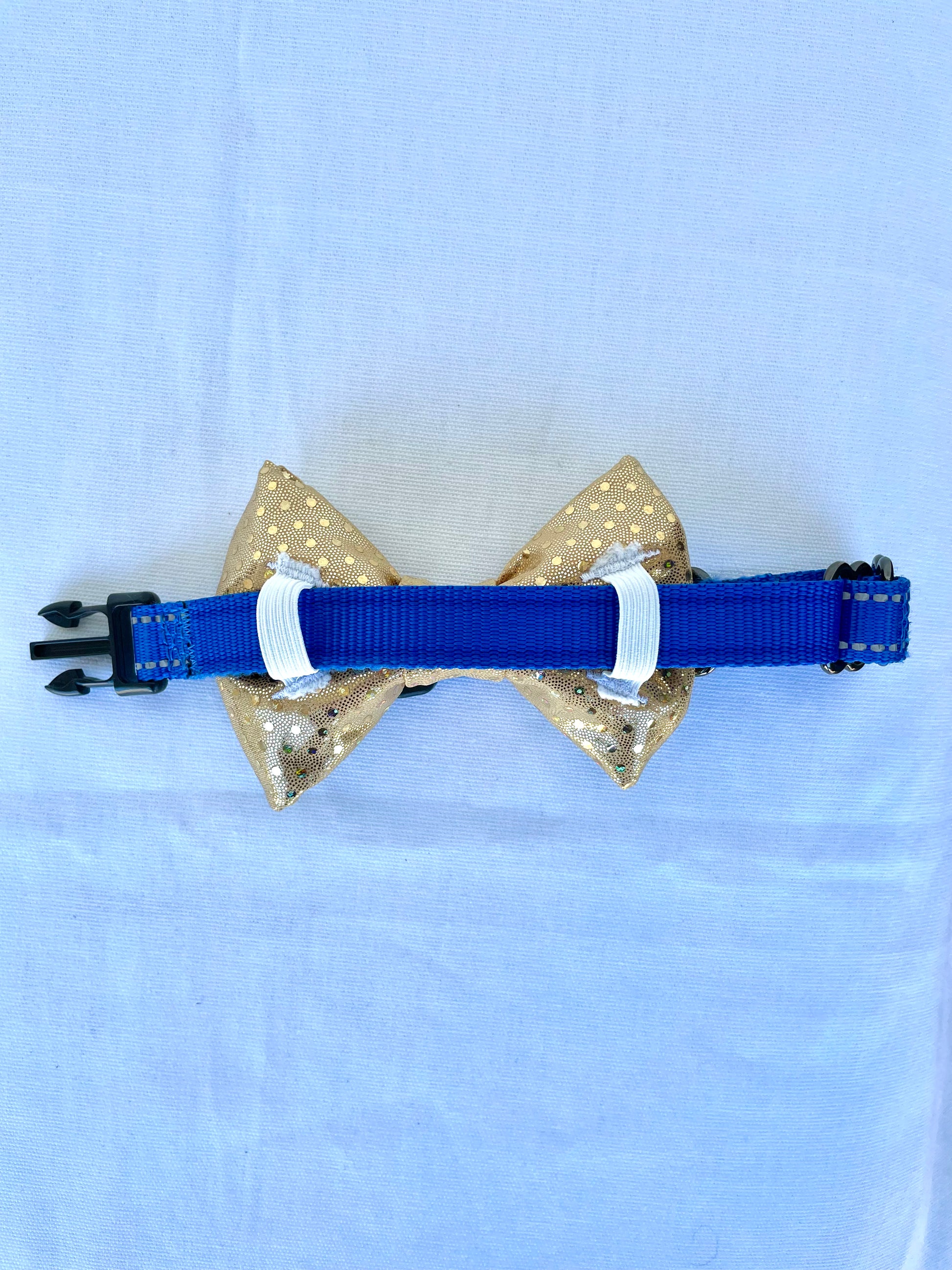 Named by the 2022 Le Pawdrobe Models, this sparkly gold bow is all ready to pawty!