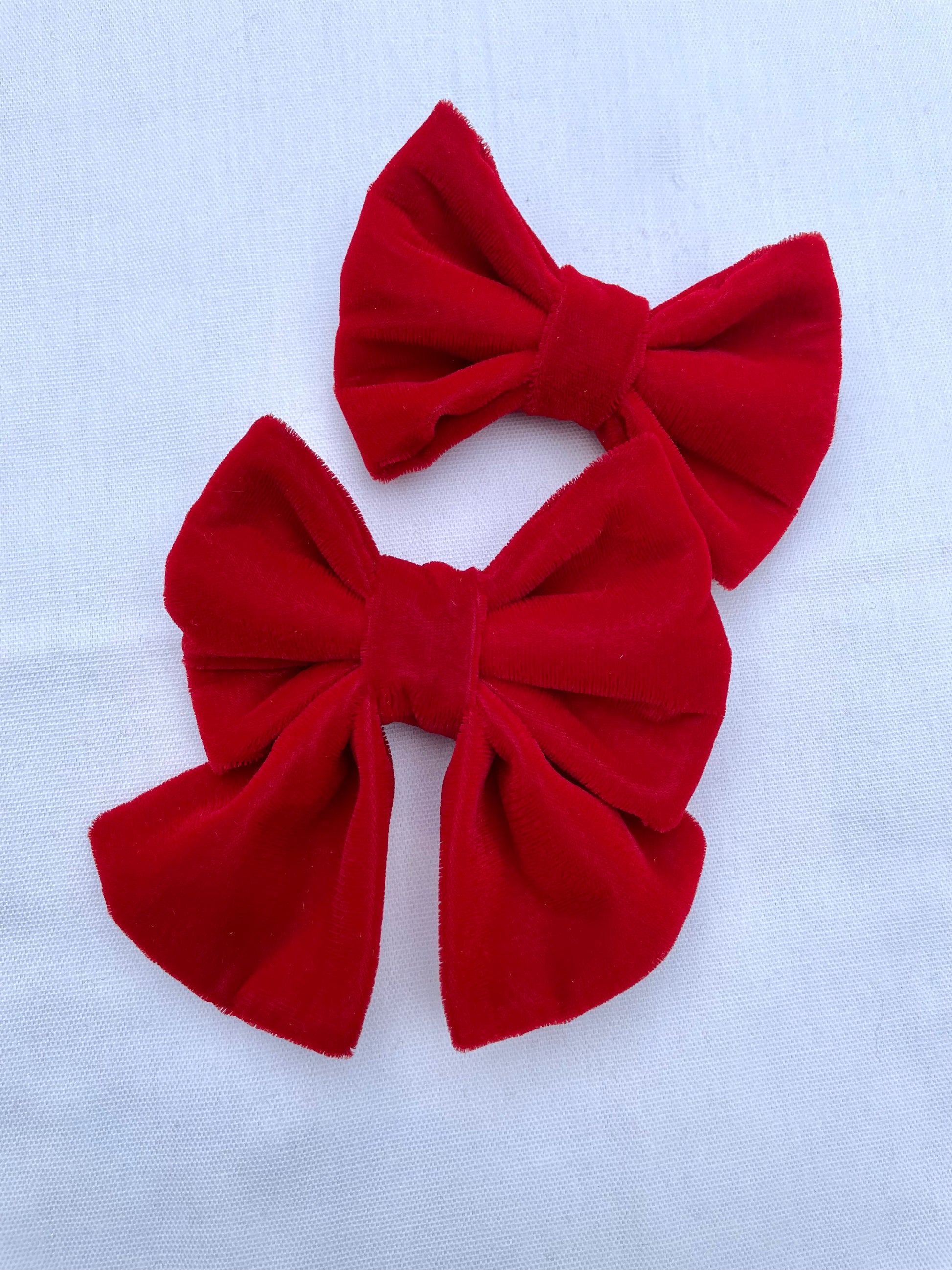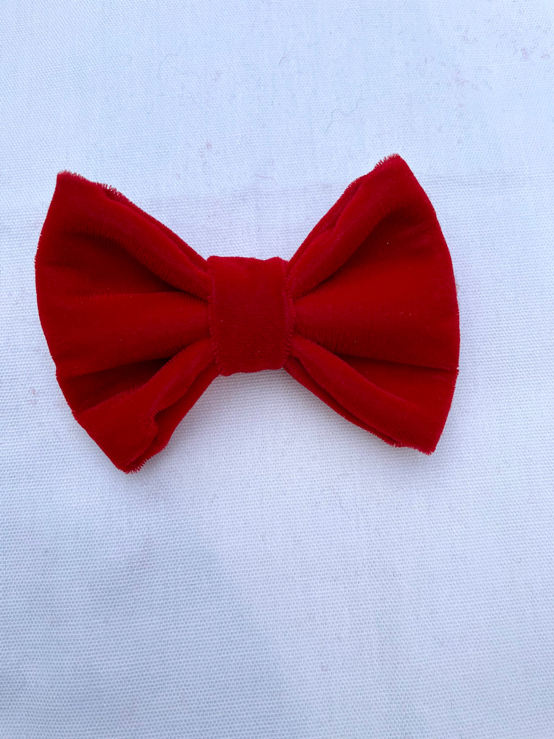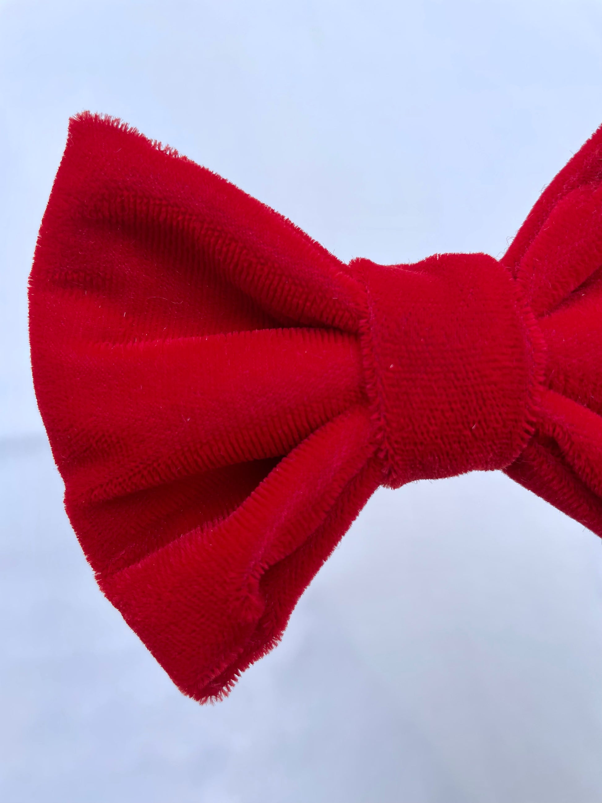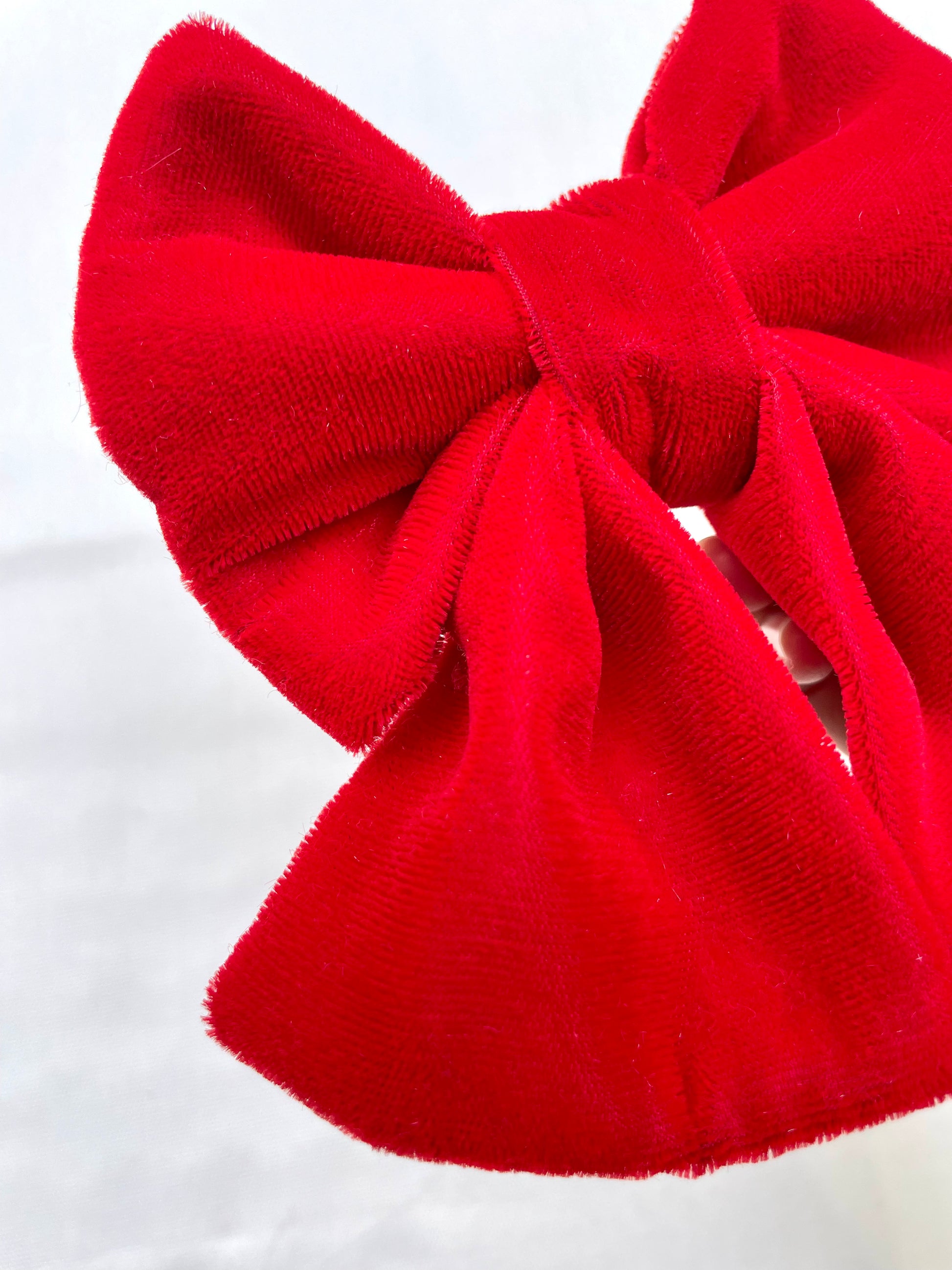 Scarlet is made with red velvet. Velvet bows tend to be more "plush" than our cotton bows