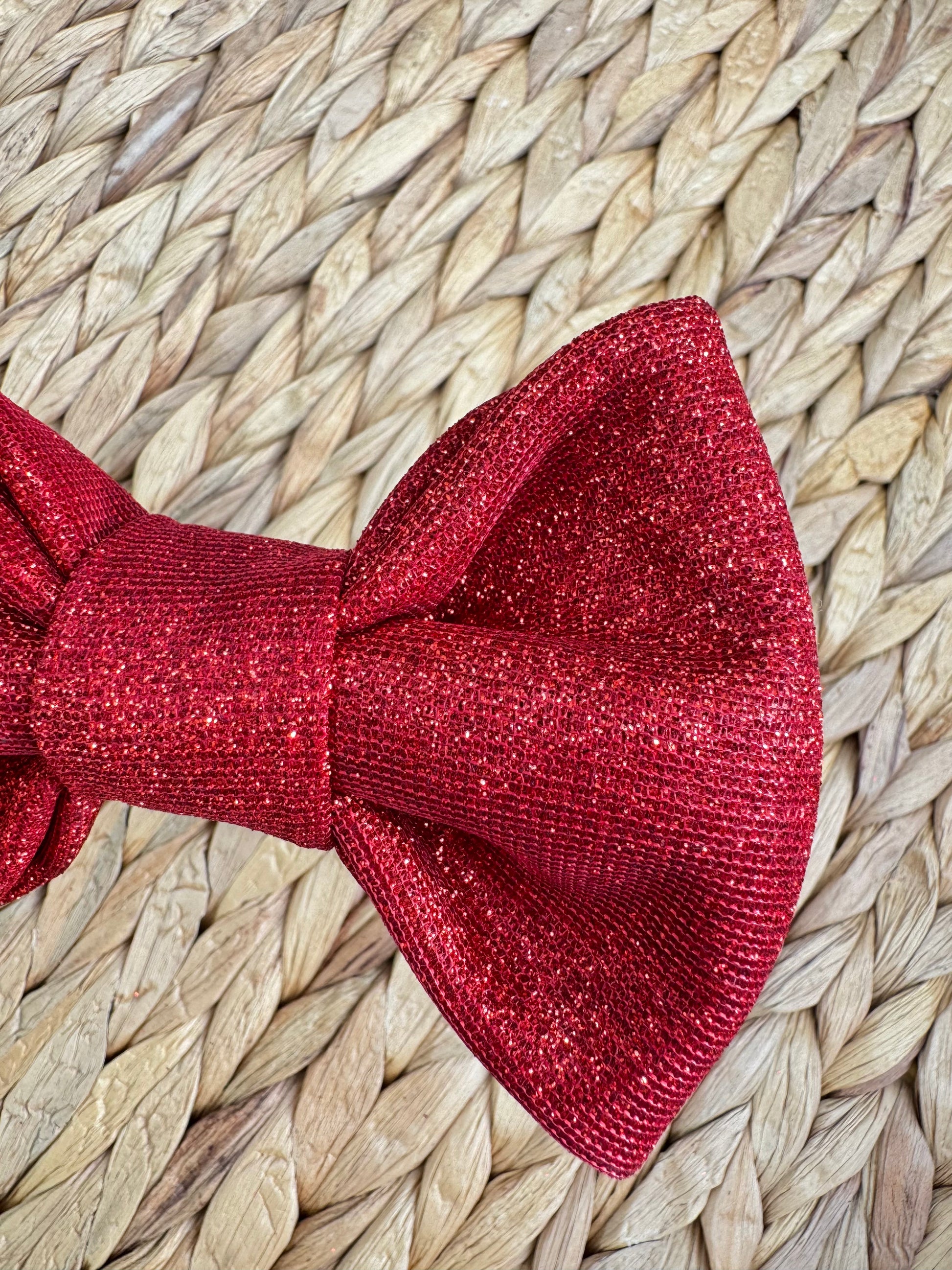 All bows are handmade, so patterns and sizes will vary slightly. There are two 1.5" elastic bands at the back of the bows.