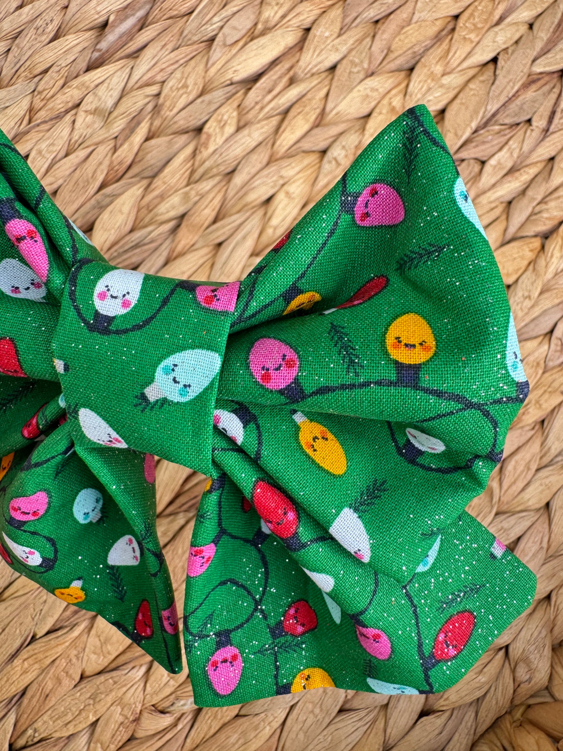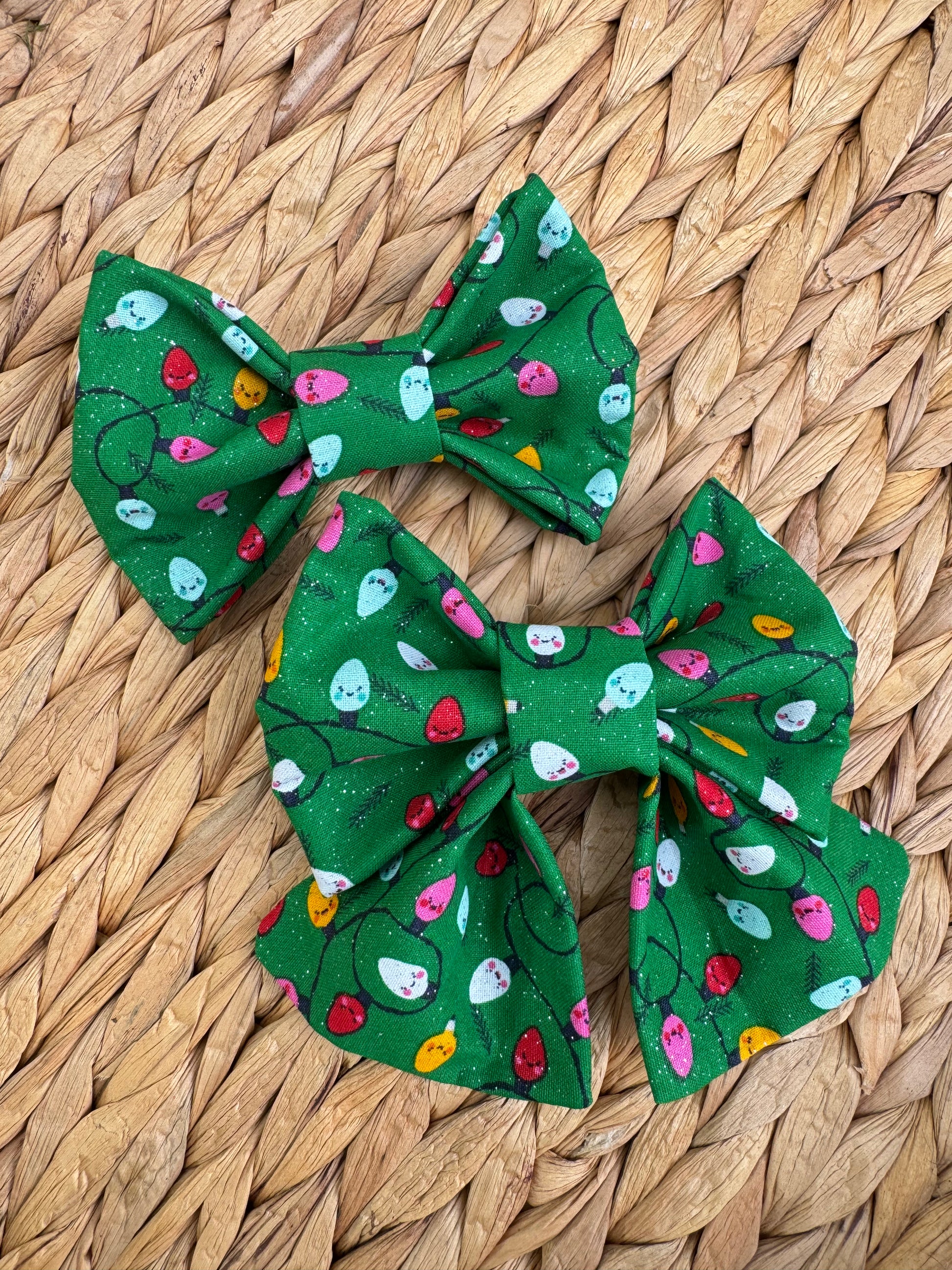 All bows are handmade, so patterns and sizes will vary slightly. There are two 1.5" elastic bands at the back of the bows.