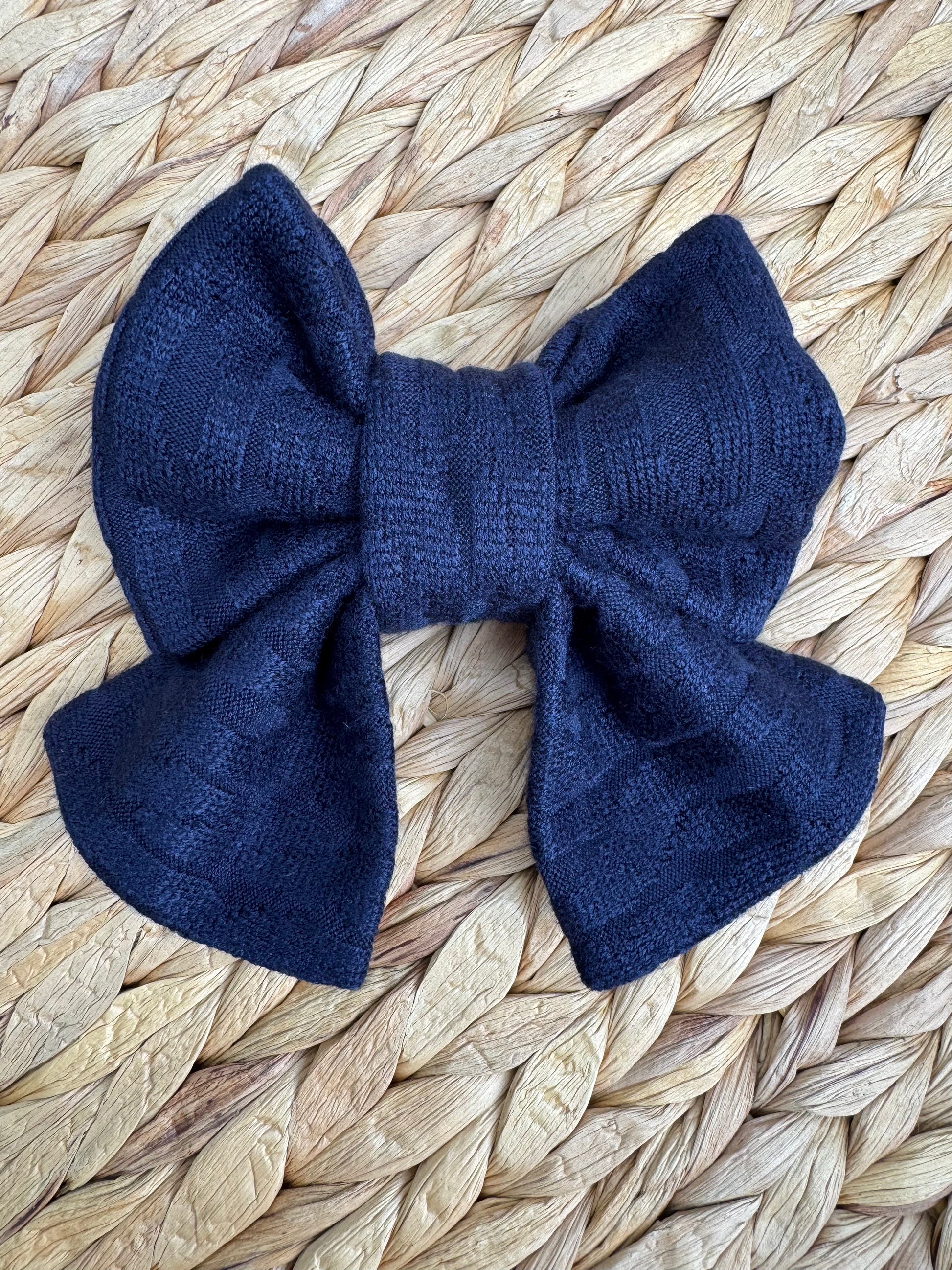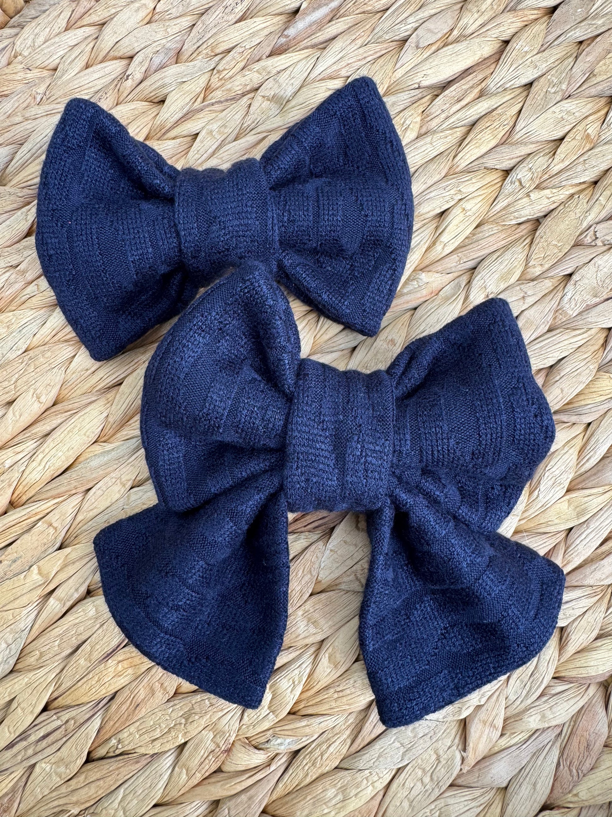 All bows are handmade, so patterns and sizes will vary slightly. There are two 1.5" elastic bands at the back of the bows.